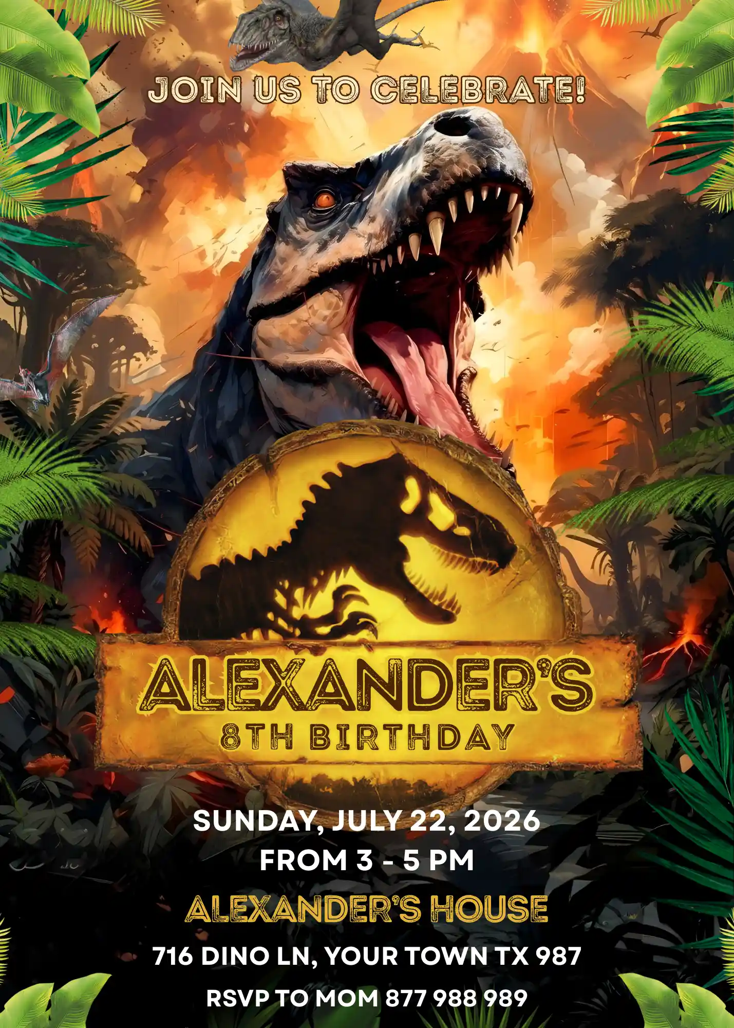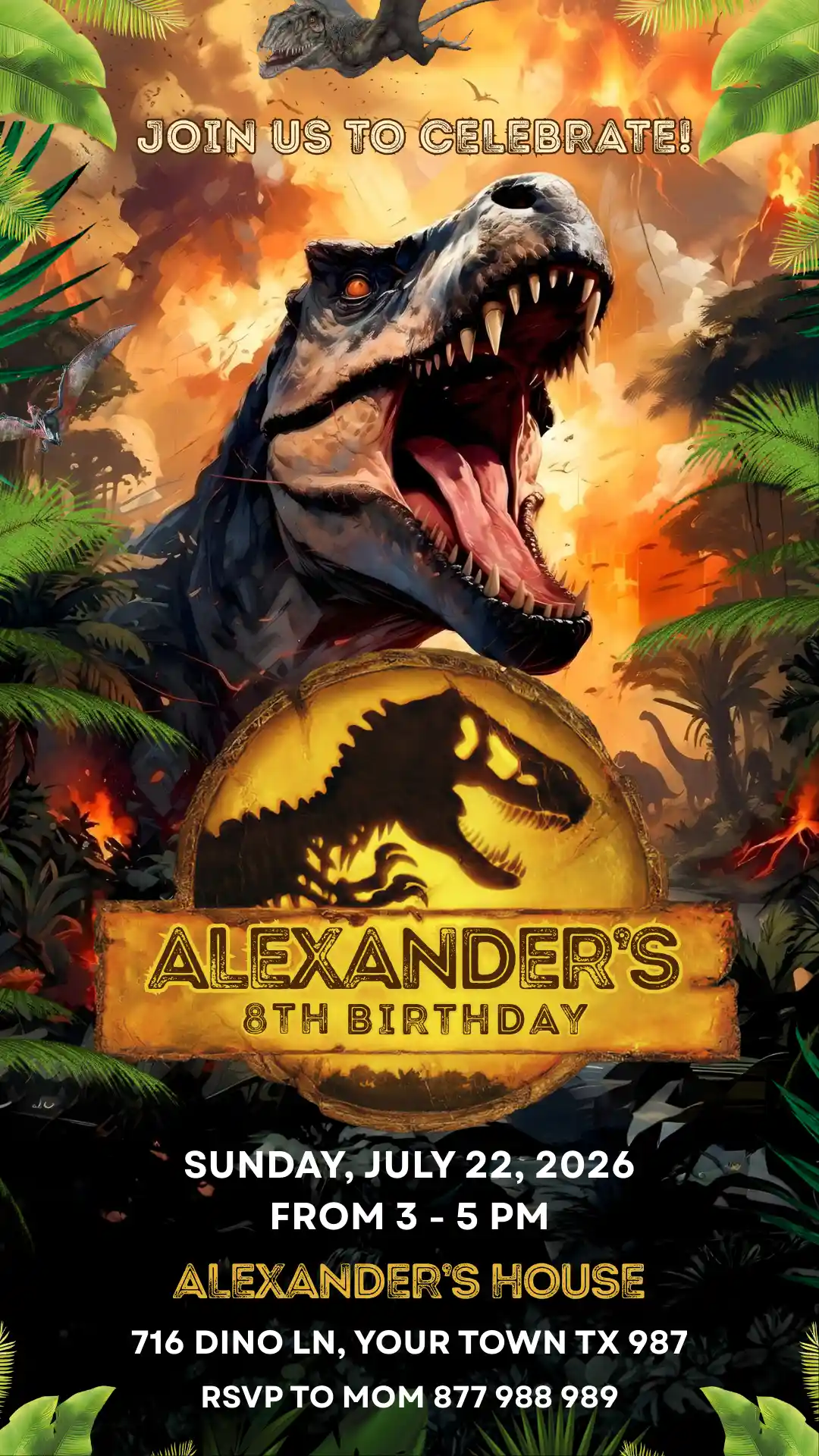 Our Jurassic World Birthday Invite template is fully editable, giving you the power to customize the details for your child’s big milestone: