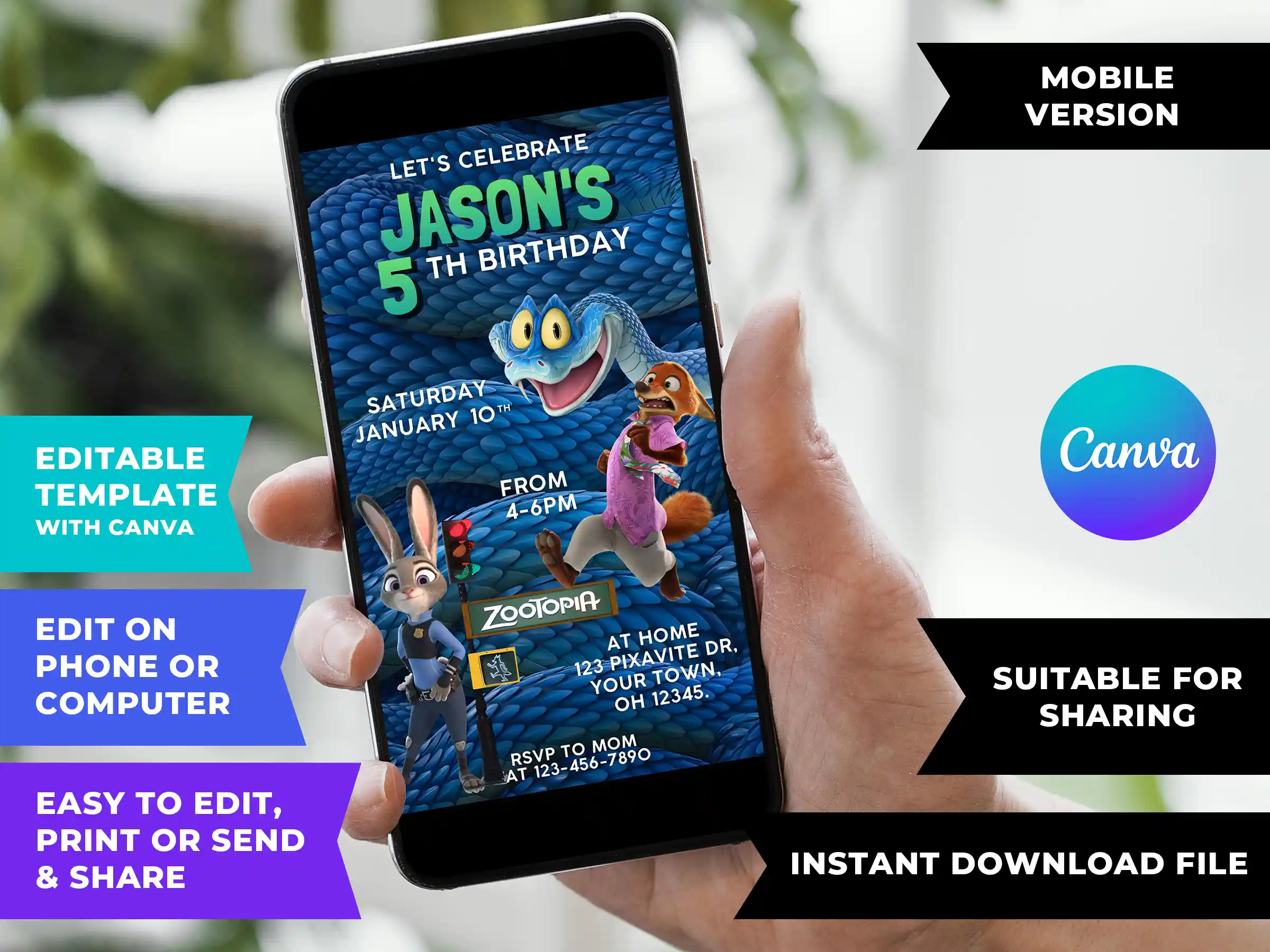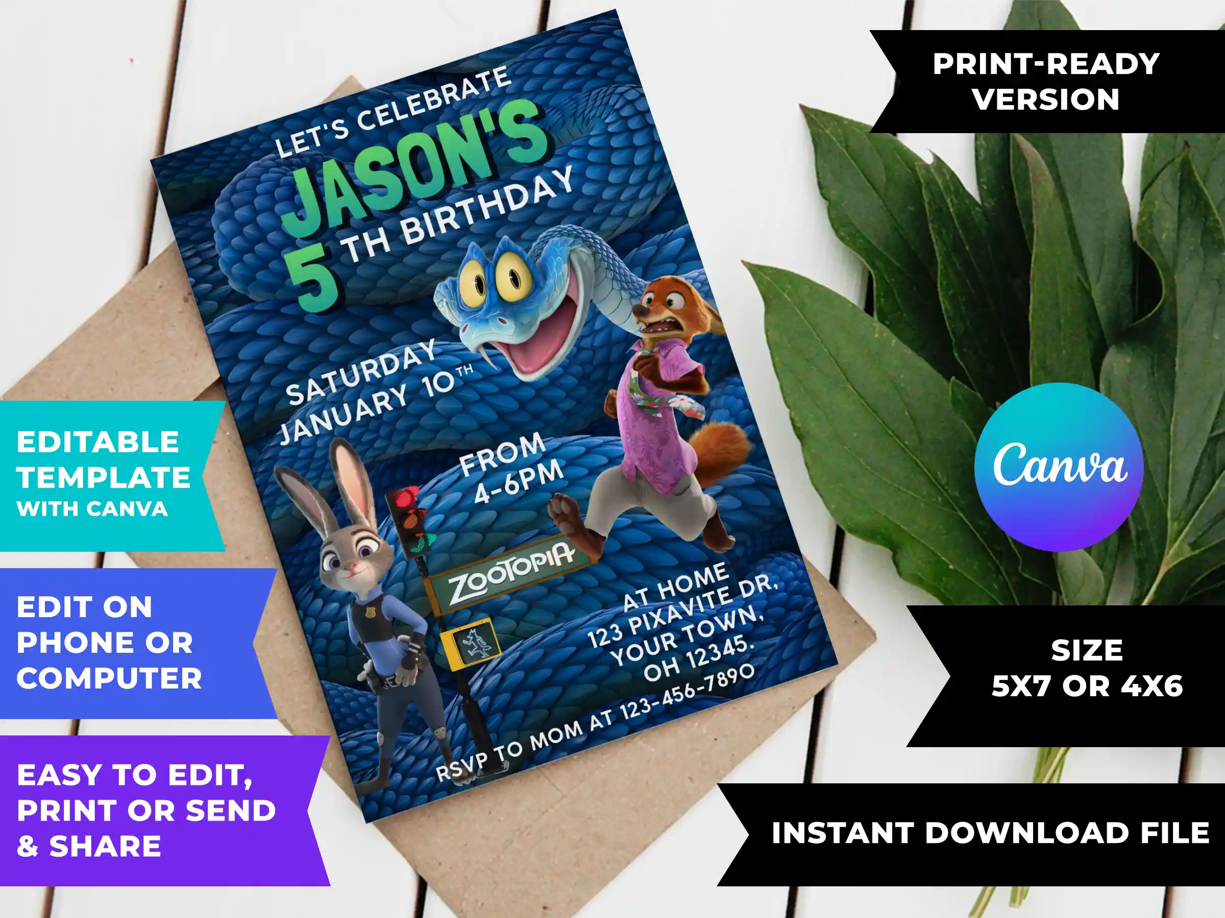 Instantly customize and download your Zootopia 2 Birthday Invitation on Canva within minutes. No special software or design skills required! Whether you’re on your phone, tablet, or computer, an internet connection is all you need to prepare your file.